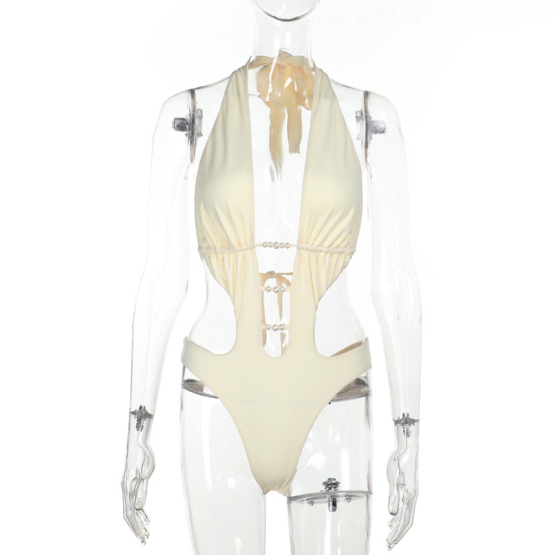 Bead hollow hot spring swimming neck hanging comfortable jumpsuit