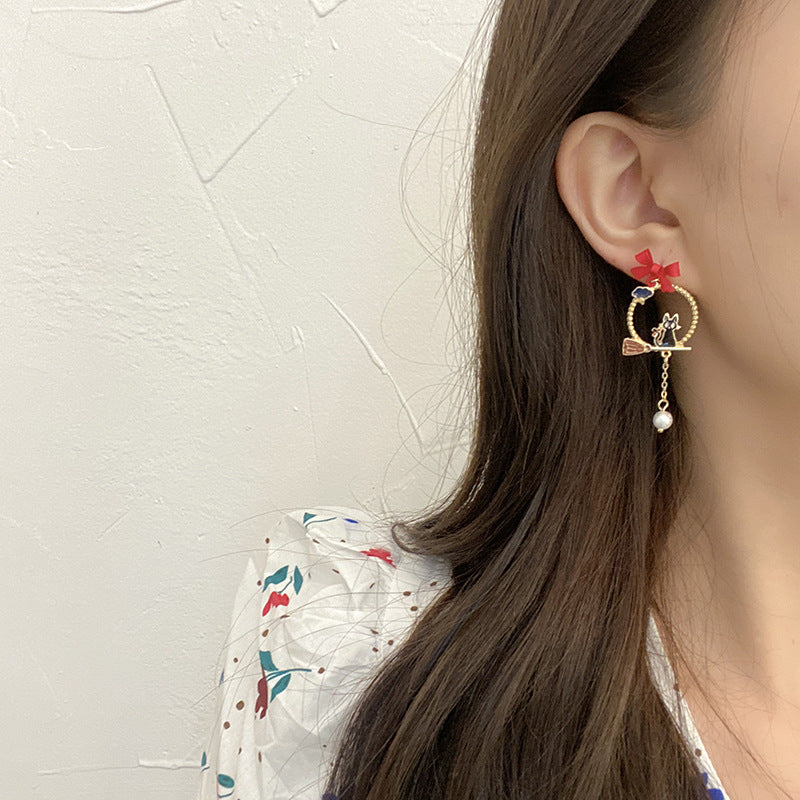Bow cartoon character cat earrings, personalized and creative street photography drip oil earrings