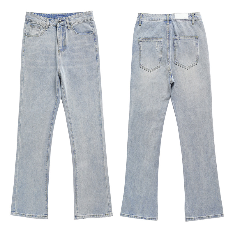 Flared Washed Basic Denim Pants Cleanfit Slim Straight Vibe High Street Casual Trousers for Men
