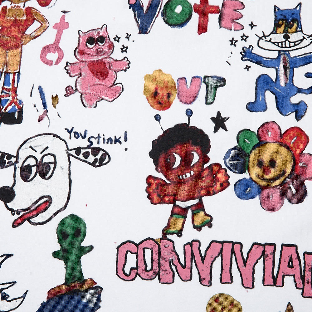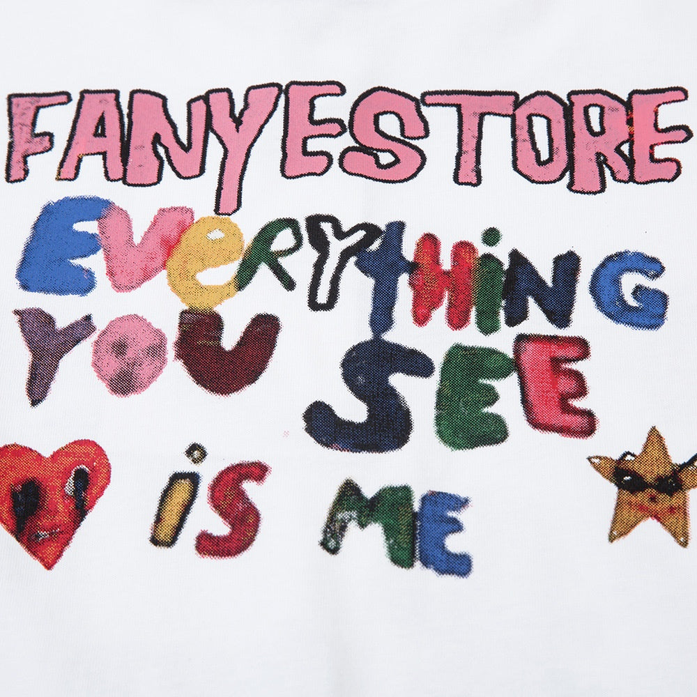 Fun Graffiti Cartoon Print Short Sleeve T-Shirt Hip Hop Trendy Men's Summer Lazy Pure Cotton Casual Half Sleeve Tee