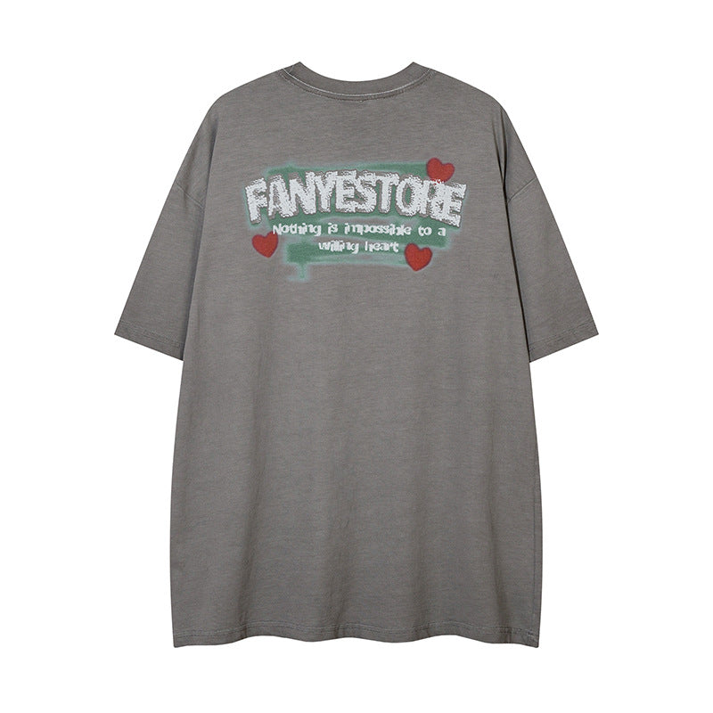 Hand-Painted Anime Oil Painting Print Short Sleeve T-Shirt Trendy Hip Hop Men's Summer Loose Casual Pure Cotton Vintage Top