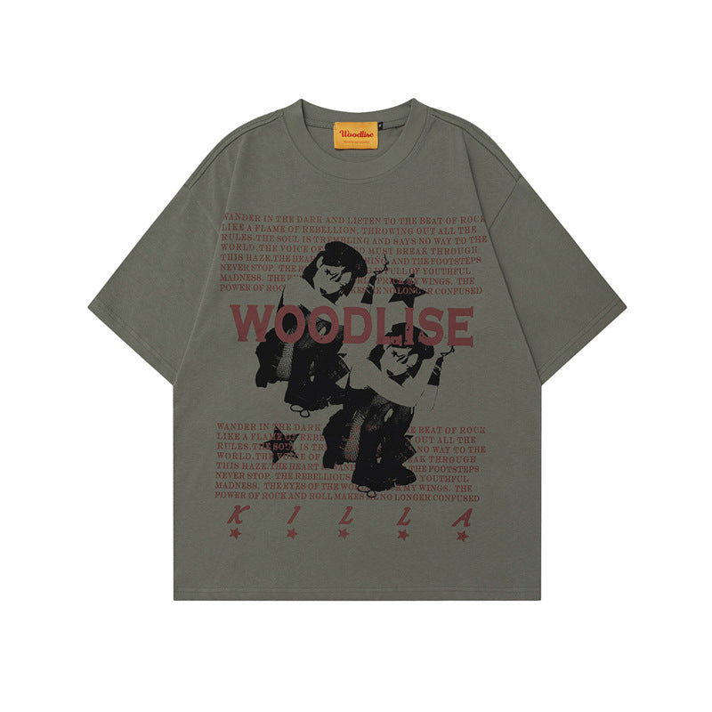 Letter Cartoon Print Short Sleeve T-Shirt Unisex Oversize High Street Versatile Couple Top INS Trendy