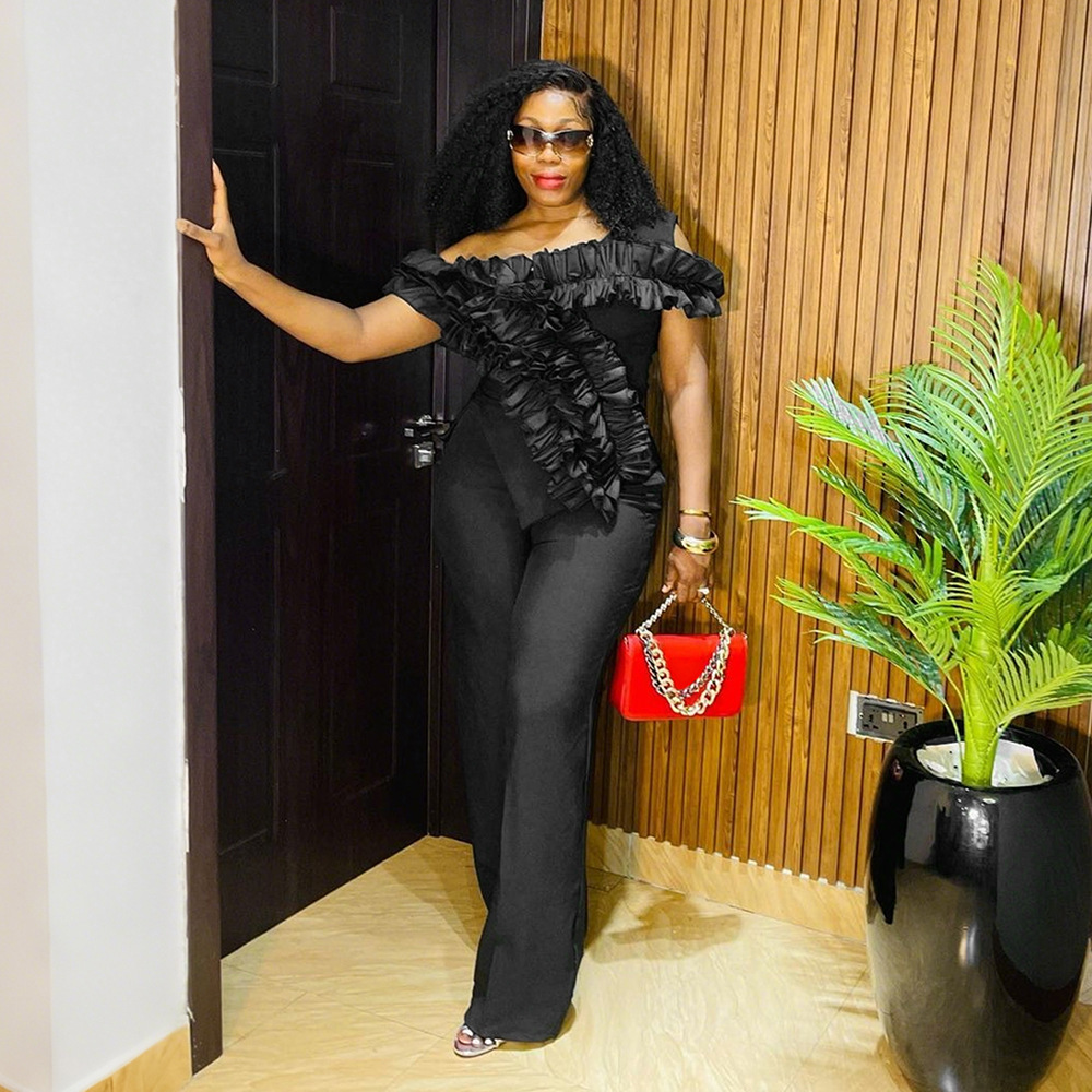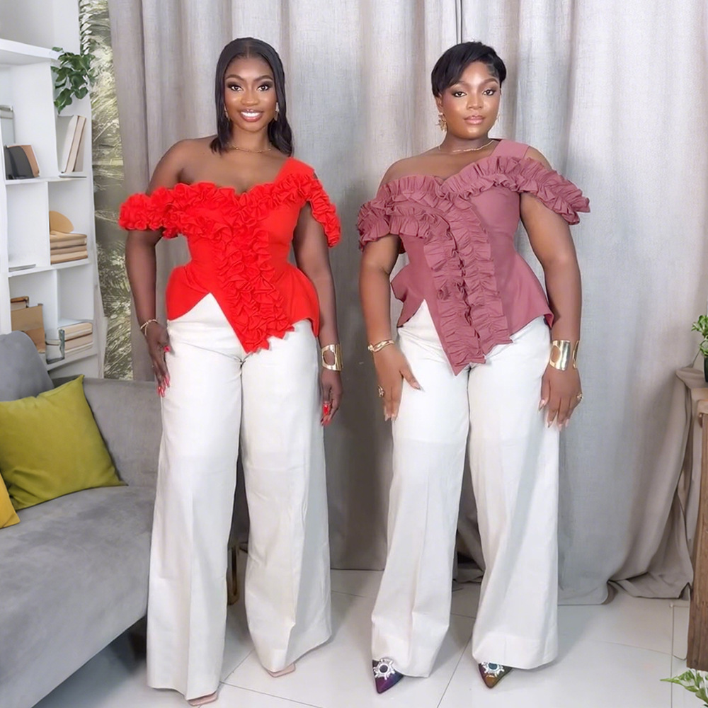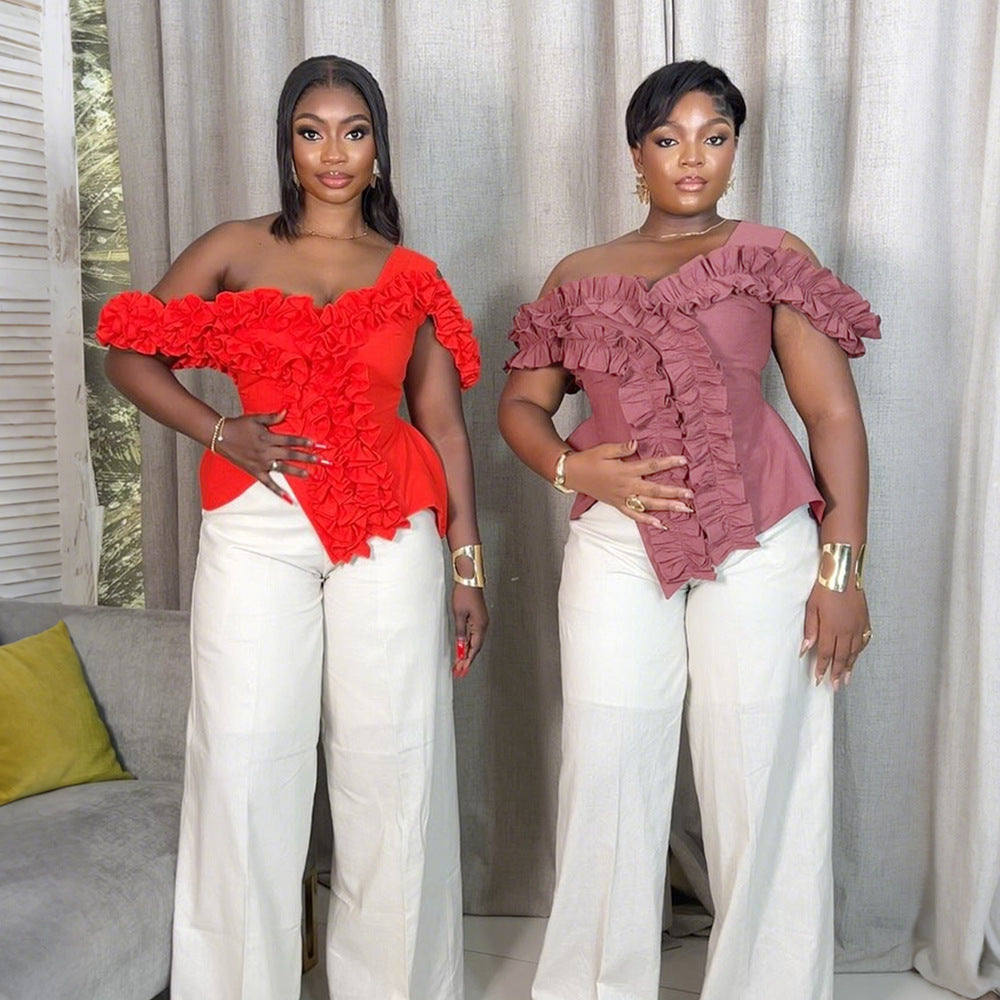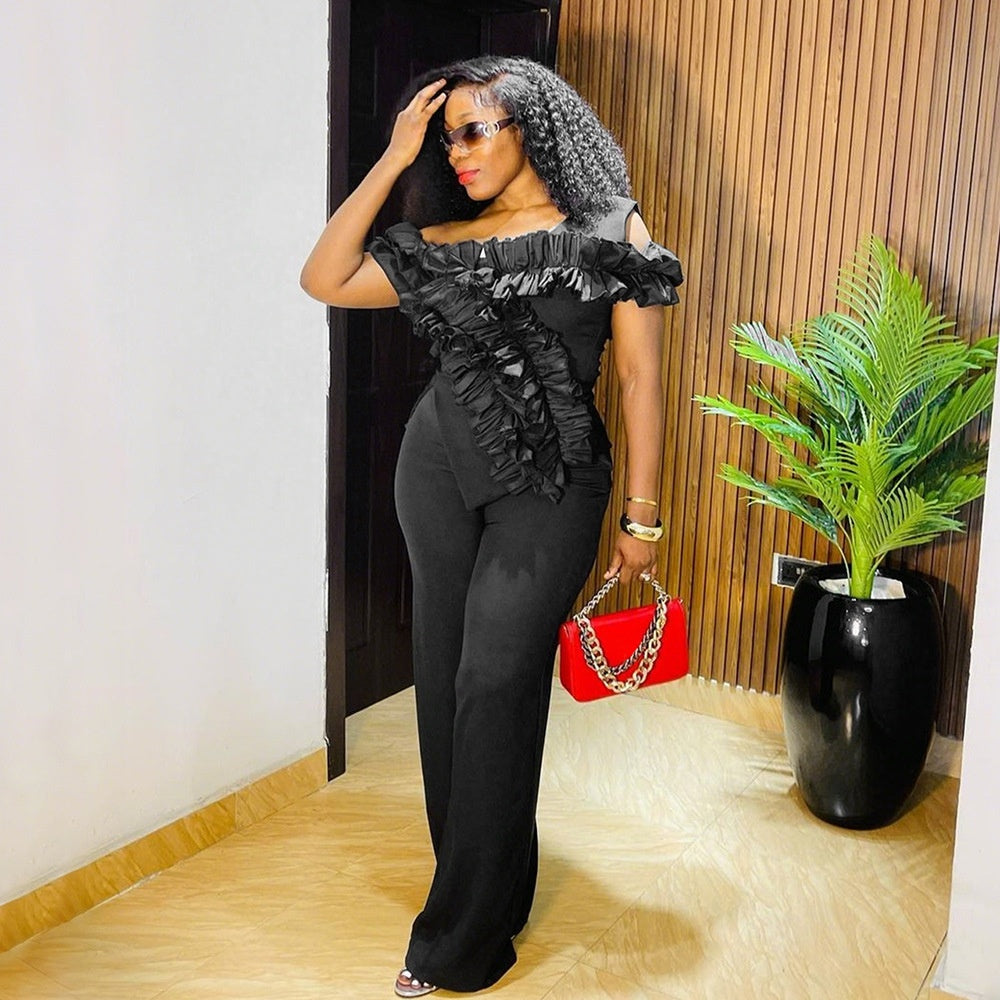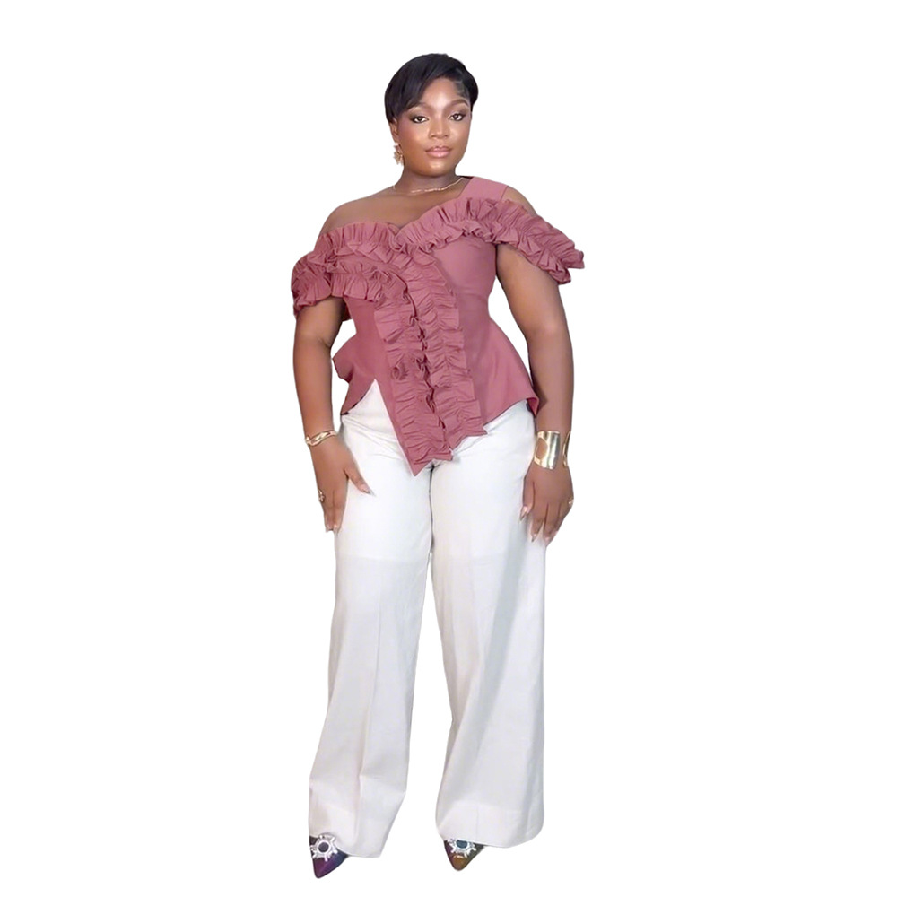 One-Shoulder Irregular Ruffle Design Top Women's T-Shirt Wide Style