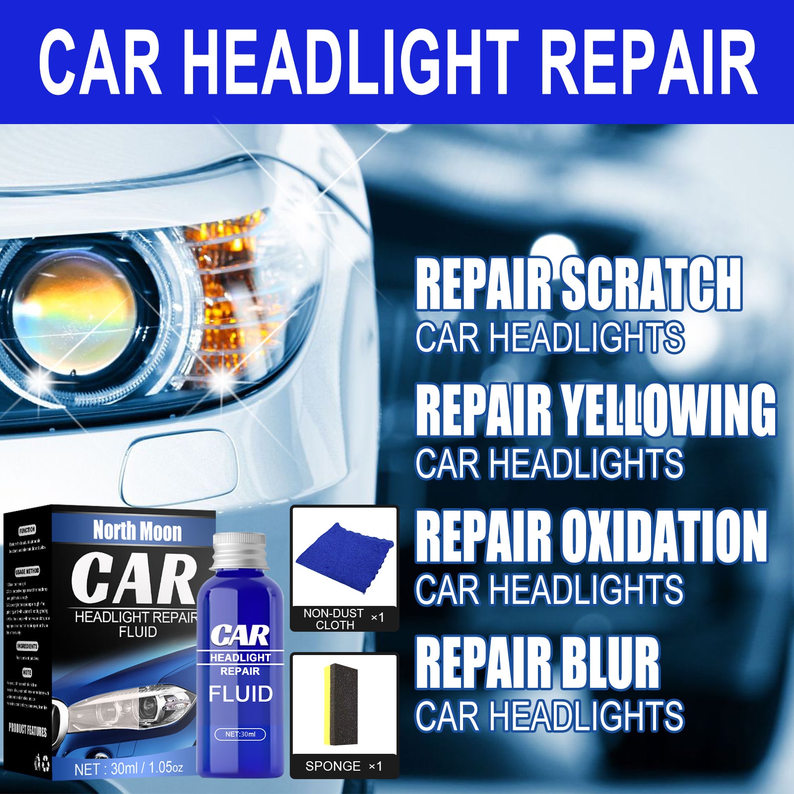 Our car lamp refurbishment and repair agent (30ml set) contains resin and solvent. It can repair scratched car headlights, yellow car headlights and oxidized car headlights. Its usage method is very simple: First, wipe the lamp surface, then pour it onto the car lamp, and finally use a sponge to wipe off the foam. And it can clean the dirt on the car lamps.