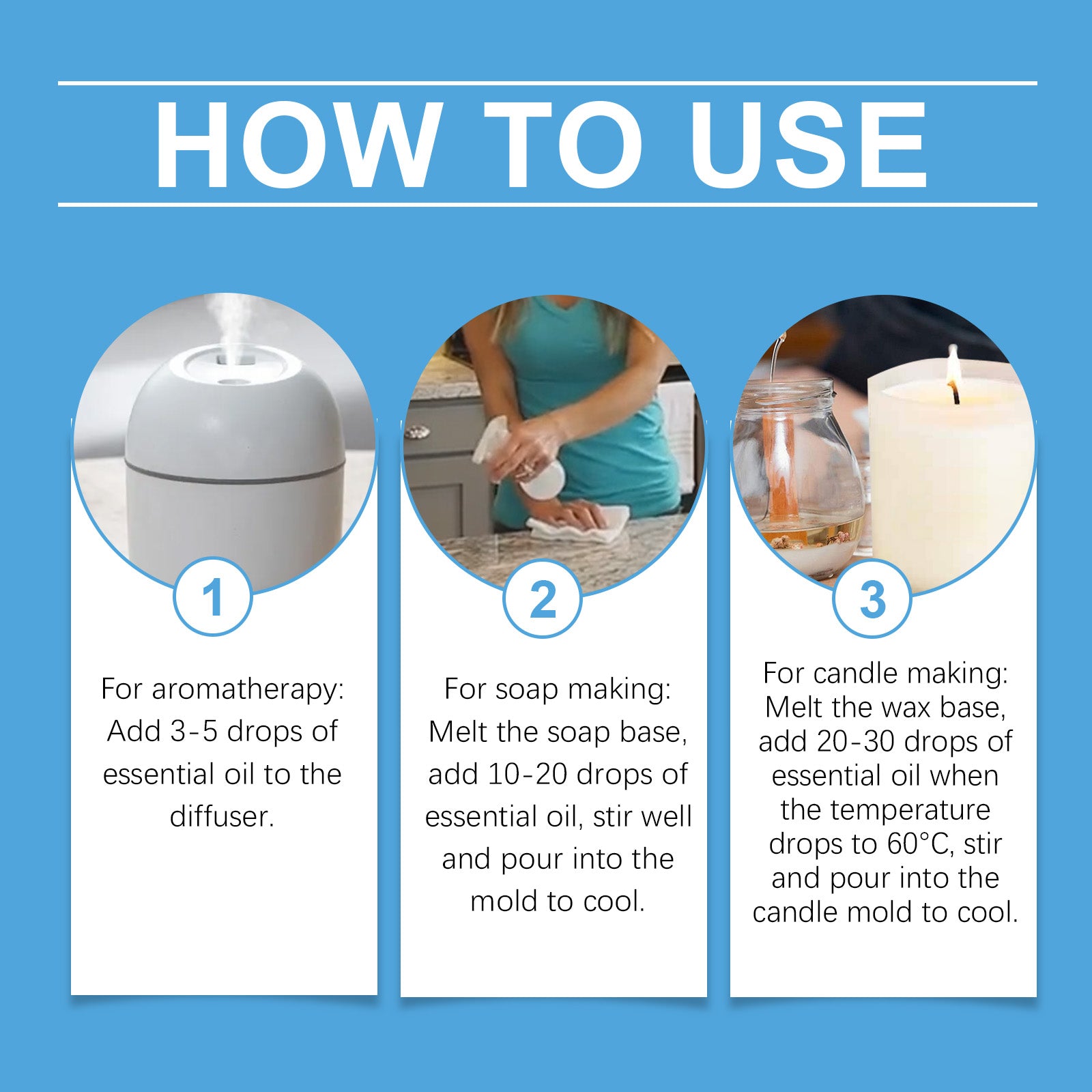 Our winter aromatherapy oil set contains cranberries: rosemary leaf oil, bilberry seed oil; Vanilla: mineral oil, thyme flower/leaf oil; Mint: castor seed oil, mint leaf oil; Cinnamon: tocopherol (vitamin E), cinnamon leaf oil; Cedar: mineral oil, North African cedar bark oil; Apples: castor oil, apple seed oil. It can help freshen the air and create the warmest, most inviting smell, while promoting relaxation and providing other health benefits. Its use is simple: for aromatherapy: add 3-5 drops of essential oil to the diffuser, for making soap: melt the soap base, add 10-20 drops of essential oil, stir well and pour into the mold to cool, melt the wax base, add 20-30 drops of essential oil when the temperature drops to 60°C, stir and pour into the candle mold to cool. It is widely used in aromatherapy, handmade soap and candle making.